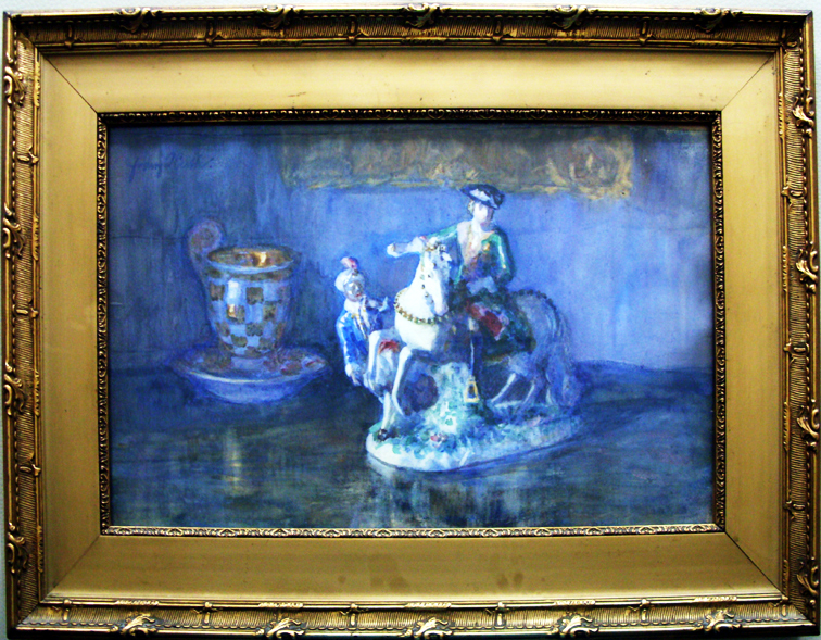 2 Aquarelle Huths, welche Porzellan zeigen.