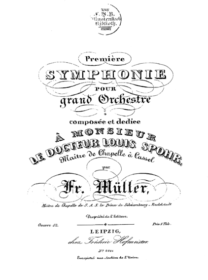 Friedrich Müller, geb. 10. 12. 1786 in Orlamünde als Sohn des dortigen Stadtmusicus, gest. 12. 12. 1871 in Rudolstadt, Dirigent und Komponist. Er wurde schon 1802 nach Rudolstadt berufen und als Violoncellist und Clarinettist bei der Kapelle angestellt. Nach dem Tode des Kapellmeisters Eberwein 1831 wurde er zum Dirigenten der fürstlichen Kapelle mit dem Titel Musikdirektor ernannt, und 1835 zum Hofkapellmeister. 1853 wurde er zu seinem 50jährigen Dienstjubiläum zum fürstlichen Rath ernannt, 1854 Ruhestand. Er schrieb 2 Symphonien, Konzerte, Variationen und andere Stücke für Clarinette, Fagott und Horn etc.